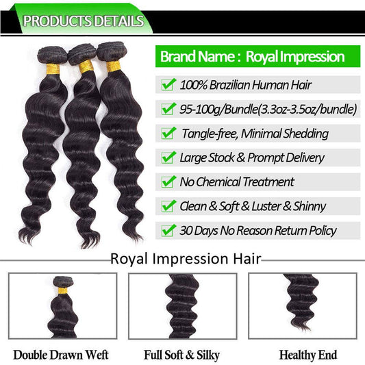 Brazilian Loose Deep Wave 3 Bundles 100% Unprocessed Virgin Human Hair Natural Black